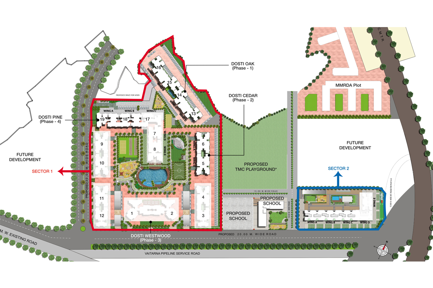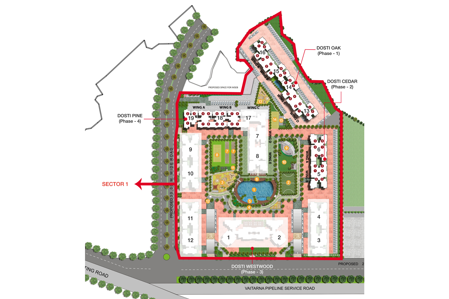 Welcome to the 'Modern Day County Life' at Dosti West County. Where beautiful gardens and spectacular views bring alive that county feeling, just as you had imagined it. Experience the true essence of bliss at our latest offering here at Dosti West County - Dosti Pine in Sector 1, where 2 & 3 BHK Homes are crafted to offer you comfort, peace and ease. This new addition along with our existing offerings in Sector 1, Dosti Oak and Dosti Cedar that comprise 2 & 3 BHK Homes with an array of the most sought after range of amenities have been carefully curated to give you an unsurpassed experience. We also have Dosti Westwood commercial premises where you can book various facilities.